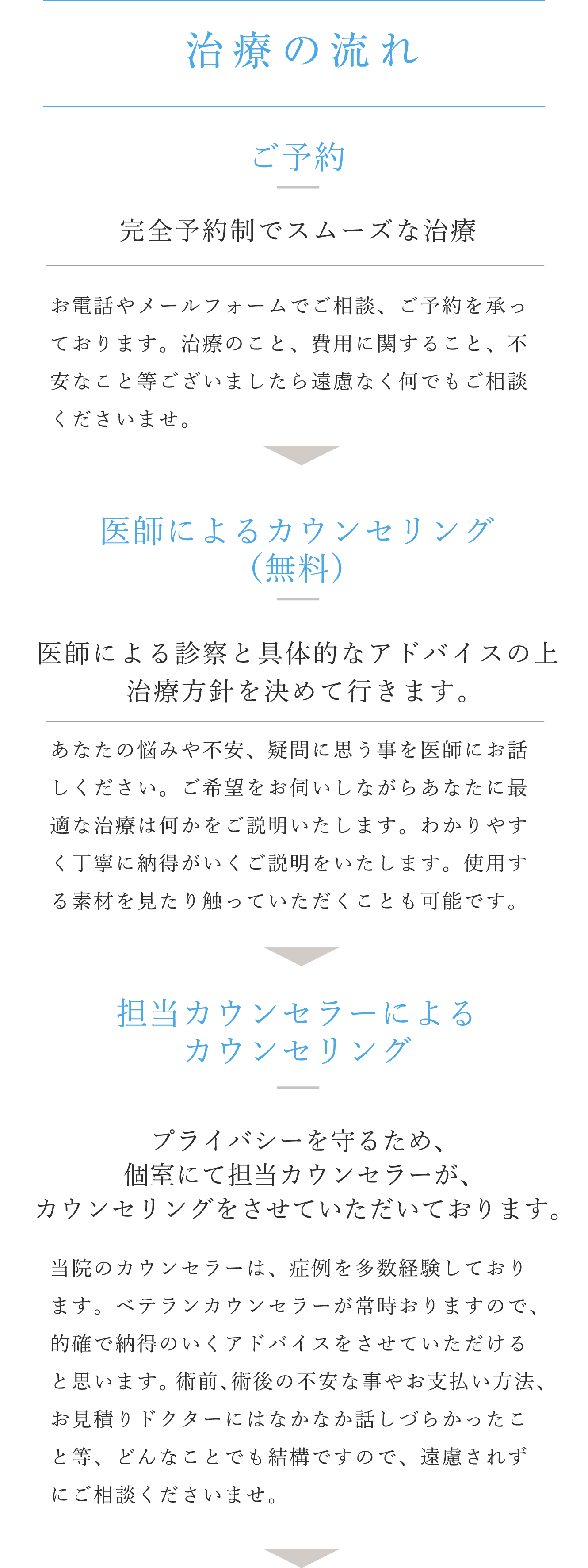 メール相談・資料請求・オンライン予約フォームなどを利用される際、メールアドレス・お名前その他の個人情報の入力が必要な場合があります。これらの個人情報は、ご相談内容に適切にお答えしたり、資料をお送りしたり、ご予約を受け付けたりするために必要なものです。また、当ウェブサイトをより快適にご利用いただけるものにするために、ご意見やご要望などについてのご質問をさせていただく場合もございますが、この場合は、任意でお答えいただくようになっております。 お答えいただけない場合も、ご予約等のご利用に支障はございません。